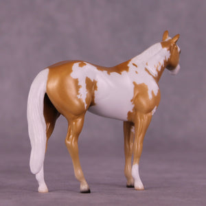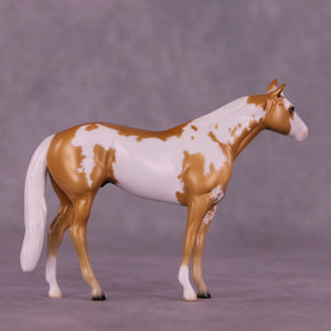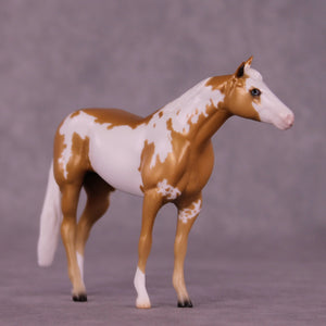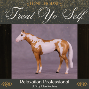Relaxation Professional - this Stock Horse chip represents the kind of horse who does things at his own speed. He's never in a hurry, and thinks nobody else should be either. Painted to a gorgeously detailed palomino overo pinto by Ellen Robbins, he is the picture of serenity.