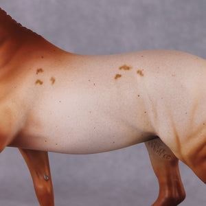 Dawn Quick beautifully captures a strawberry roan to paint on the pony for this month's Flower Series. This month's flower is the Daisy, which symbolizes cheerfulness, beauty and affection.