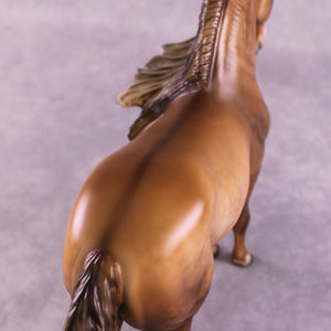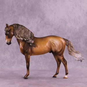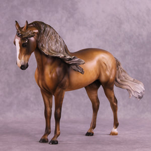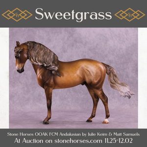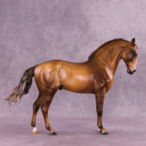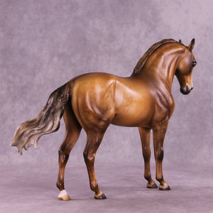 Sweetgrass is as sweet as his name suggests. Sporting a gorgeous sooty dunalino color with the softest dapples, dorsal stripe, and leg barring by Julie Keim, he is sure to make a statement. He also features a windswept mane and tail and a touch of chrome with one sock and a blaze. Sweetgrass is a delicious addition to your collection, available in all finish options.