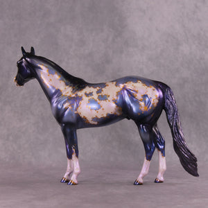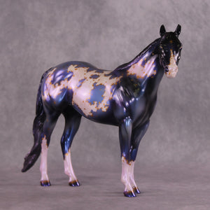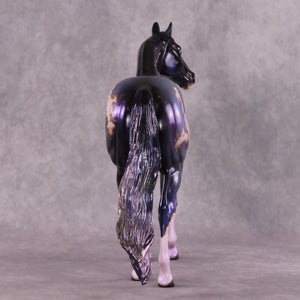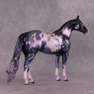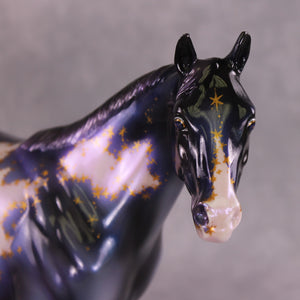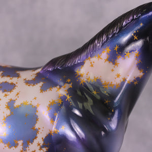 Mel has captured the mystery and magical wonder of nights sky in this deep blue and magestic purple nebula model. Taking it to another level, she then hand painted mapping of the markings in rich metallic gold stars. Glossing the model helped this piece shine and show off the remarkable rich tones! This fun piece is out of this world.
