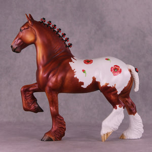 The decorator design is the same dappled red chestnut blanket appaloosa, but with hand-painted red poppy flowers in the appaloosa blanket instead of appaloosa spotting! Such a fun blend of realism and decorator elements.