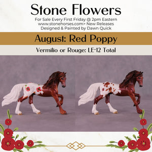 The decorator design is the same red chestnut blanket appaloosa, but with hand-painted red poppy flowers in the appaloosa blanket instead of appaloosa spotting! Such a fun blend of realism and decorator elements.