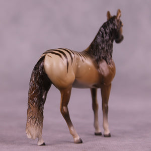 Why is She Still Here begins with our Chip Andalusian mold, customized by Mel Miller to a mare at Tegan’s request to celebrate and honor her transition as a transgender woman! Tegan painted this beauty in a stunning shade brown striped design based on the Tasmanian Tiger, aka the Thylacine. If you are a Menagerie fan, this distinguished lady will fit right in! Finish changes are not available on this piece.