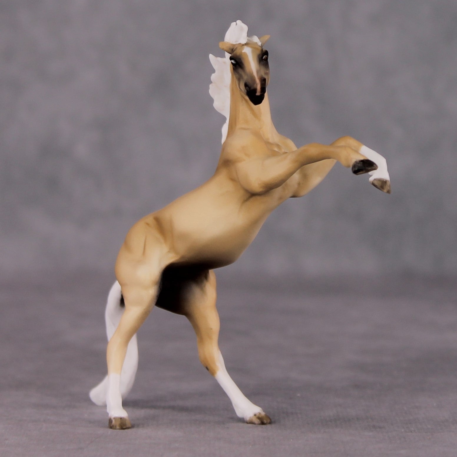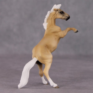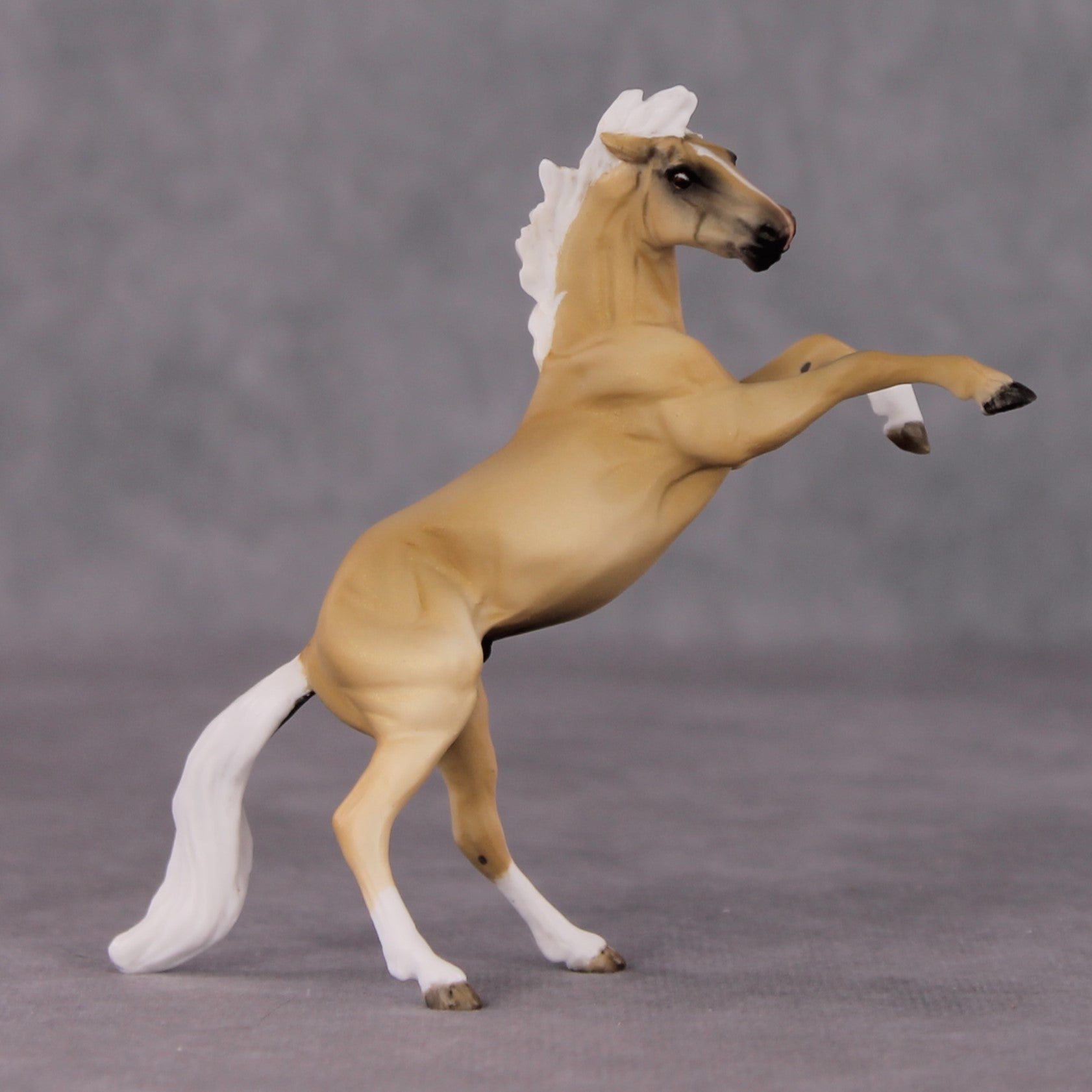 “Whydah” is a gorgeous light palomino with dramatic shading and three socks and a stripe, plus really cool and complex detailing in all four feet.