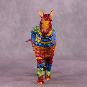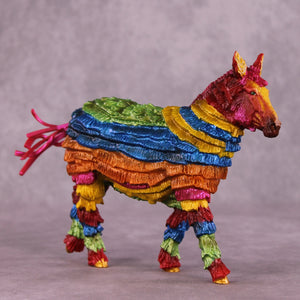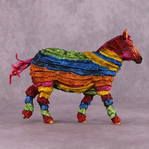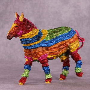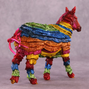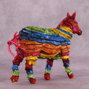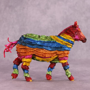 “You Are The Inspiration for Piñatas” is a fun and irreverent piece dreamed up and then created by Kristen, based on a famous line from Hayden Kristal’s top-tier equine content. Kristen took our Pebble Mule and turned her into an all-plastic piñata. No, nothing comes out if you smack it, and while Kristen always does a great job of making her pieces sturdy for show and travel, we do not recommend taking a stick to this one! She’s painted to a traditional rainbow of bright colors with gold detailing, and will stand out on any show table for years to come.