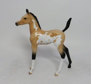 BISCOTTI-LE.7 BUCKSKIN OVERO ARABIAN FOAL MODEL HORSE BY TANSLEY HENLINE 6/8/18