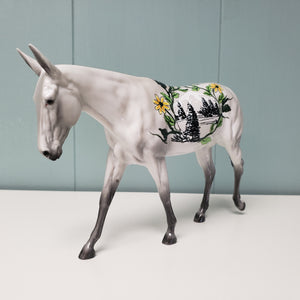 Bliss OOAK Gray W/ Tree, Mountain & Flower Vines Glossy Deco Mule Pebble By Dawn Quick Val24