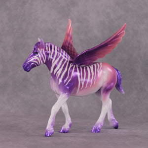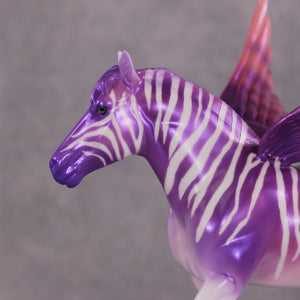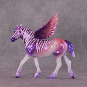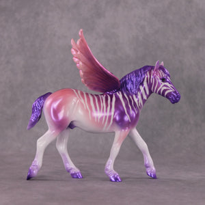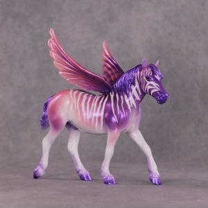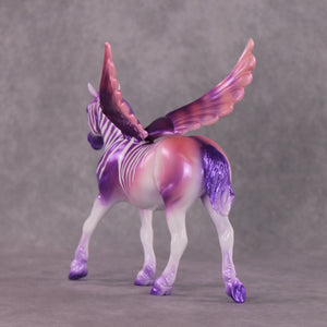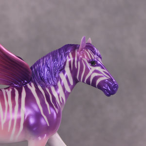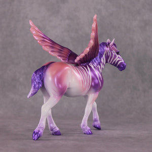 Can you guess what TV series we were watching during Tegan’s guest artist stay? “Boo-dism” should be a big hint! Tegan took our pebble draft horse with Pegasus wings and made him FABULOUS. He is now a shaded pink and purple striped decorator with tons of pearly dimension and detailing!