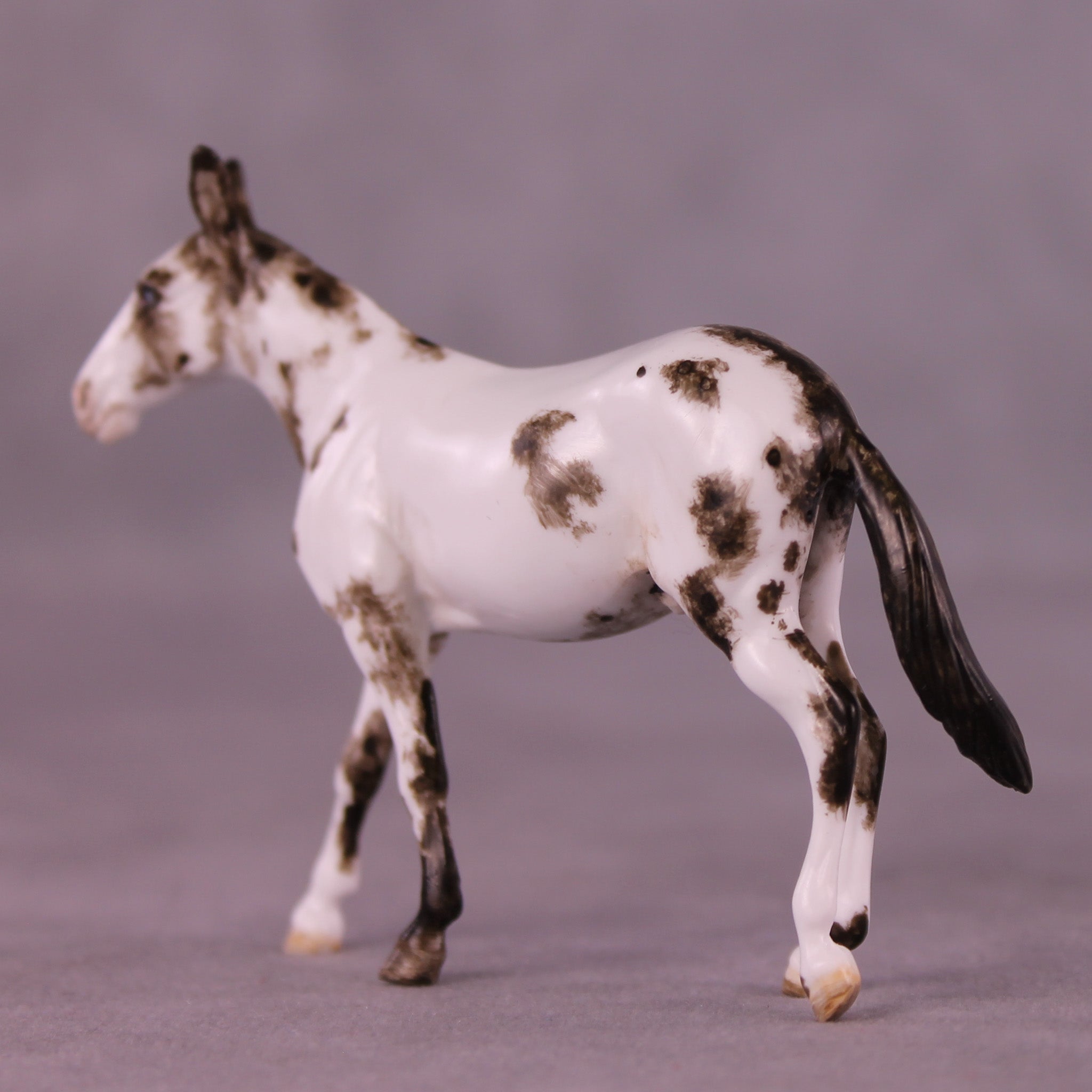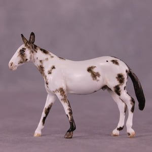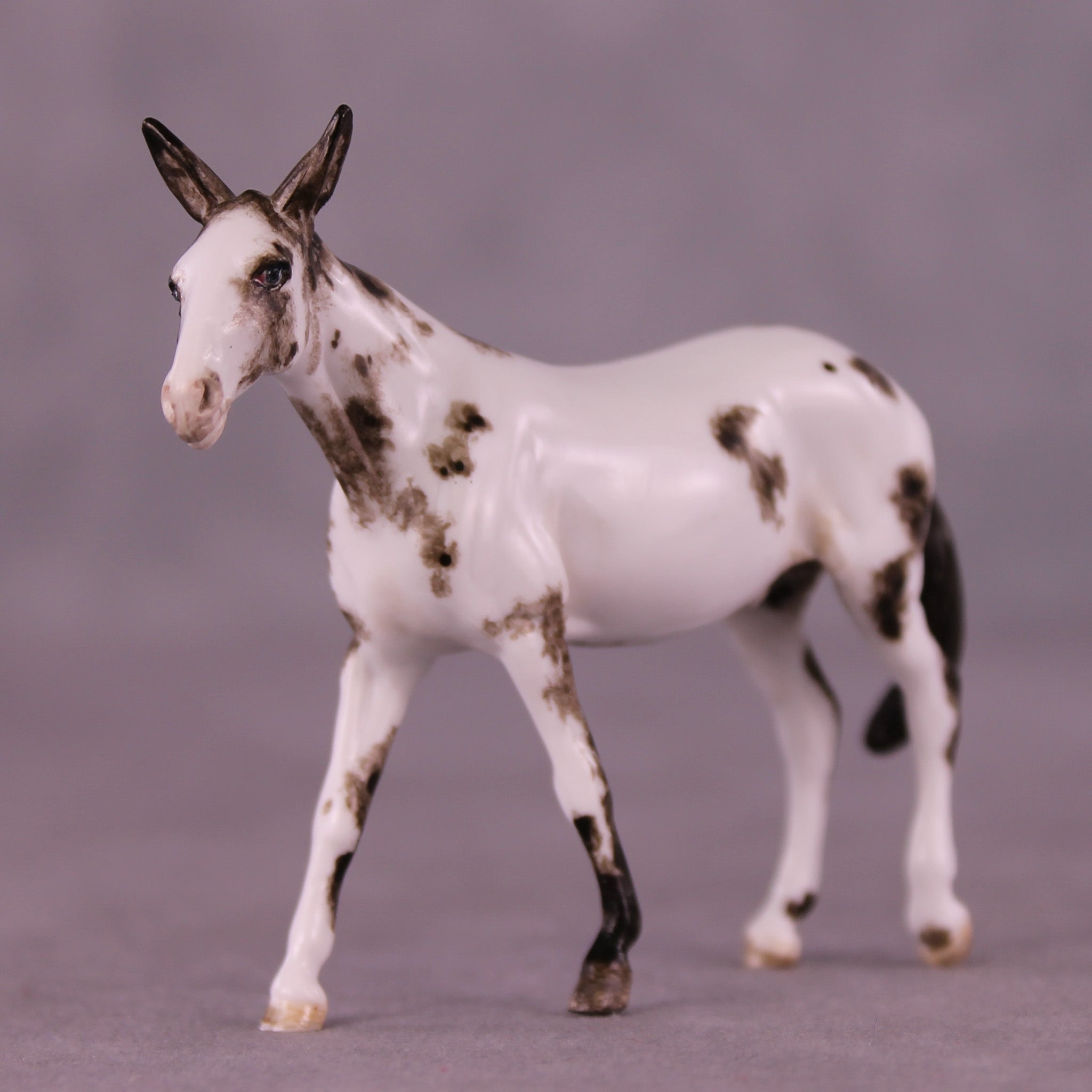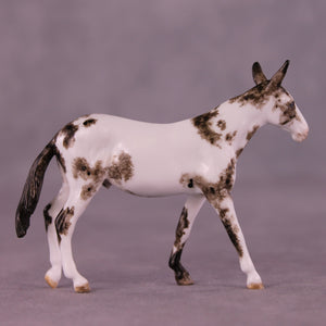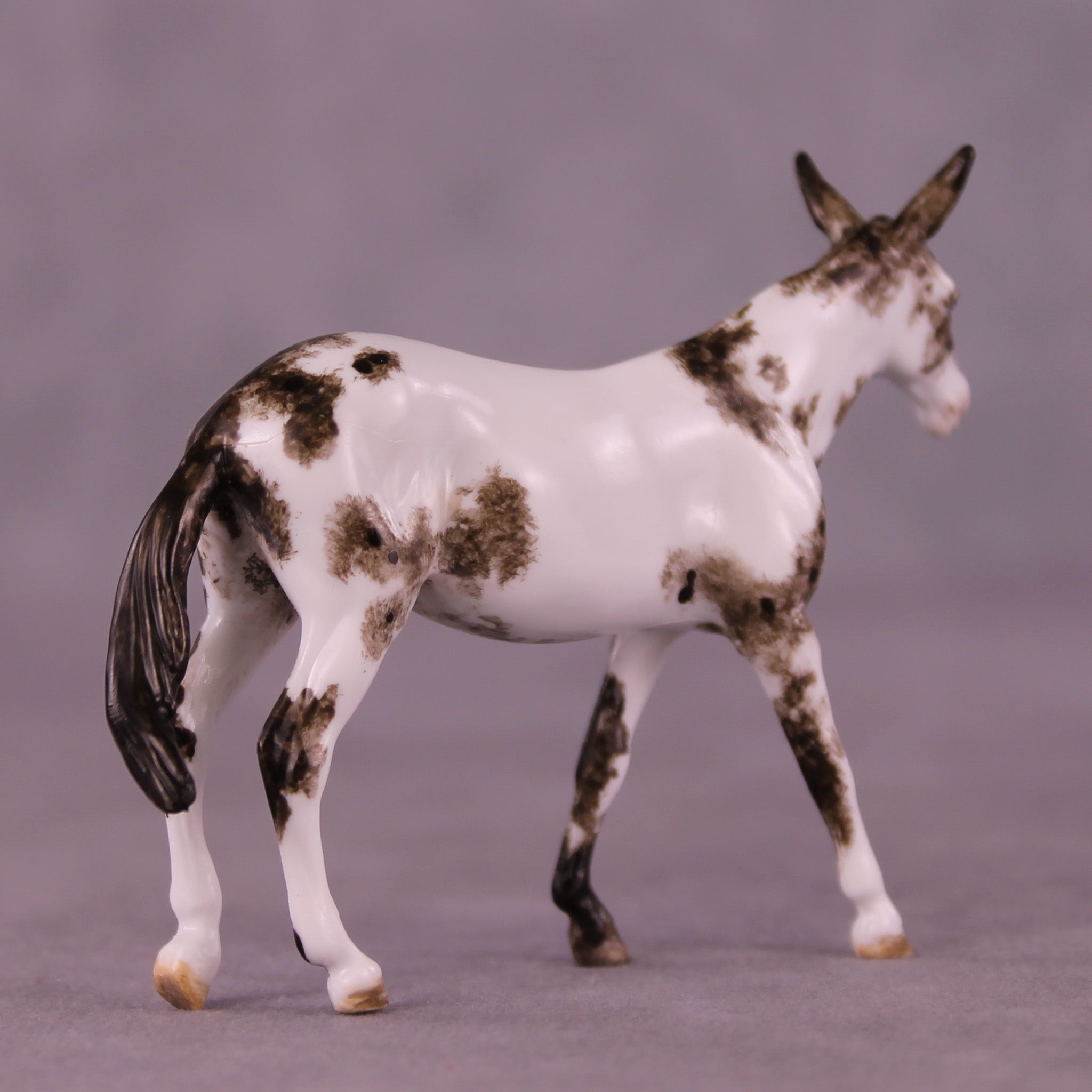 Andrea has created a wonderful collection of mules with various plays on famous Jacks! This one features a turned head, twitched listening ear, and a swishing tail. He is then painted to a gorgeously detailed sabino with loads of hand painting and hair detailing! No finish changes are offered on this piece.