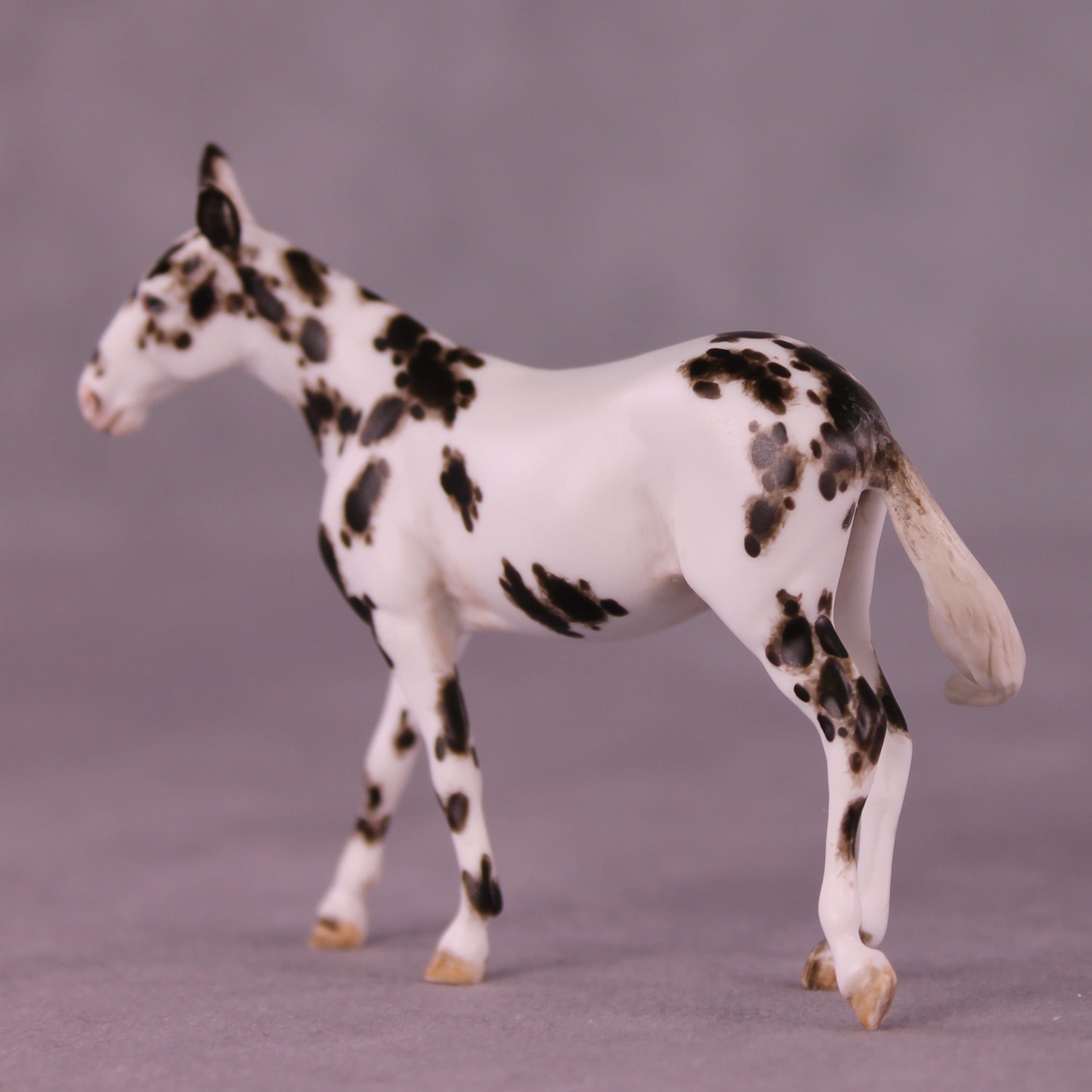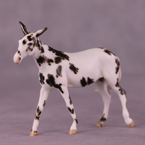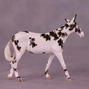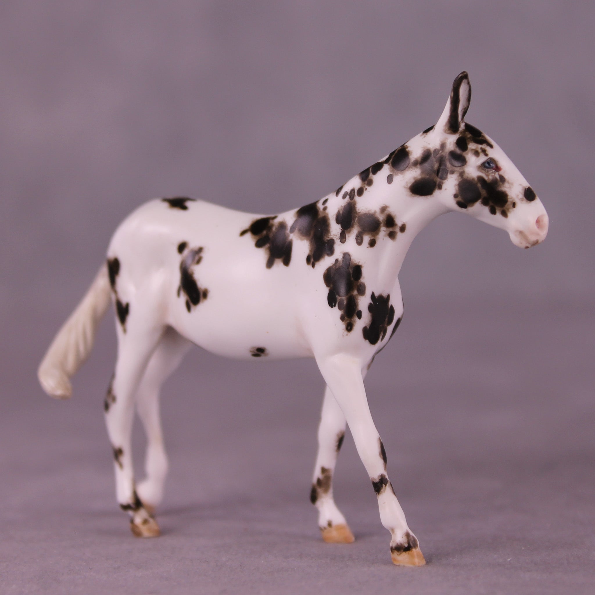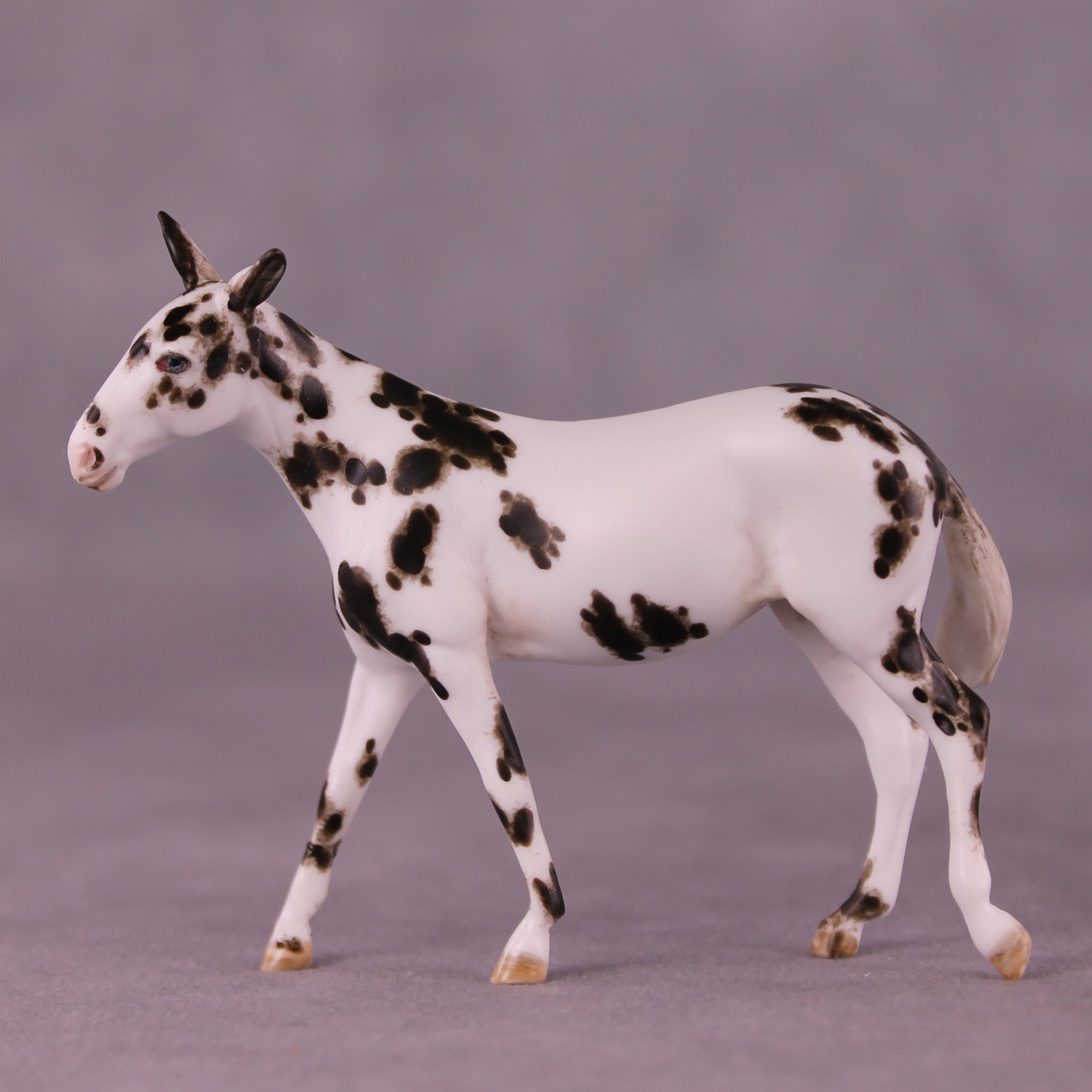 Andrea has created a wonderful collection of mules with various plays on famous Jacks! This one features a turned head, twitched listening ear, and a swishing tail. He is then painted to a gorgeously detailed leopard appaloosa with loads of hand painting and hair detailing! All finish options are available on this piece.