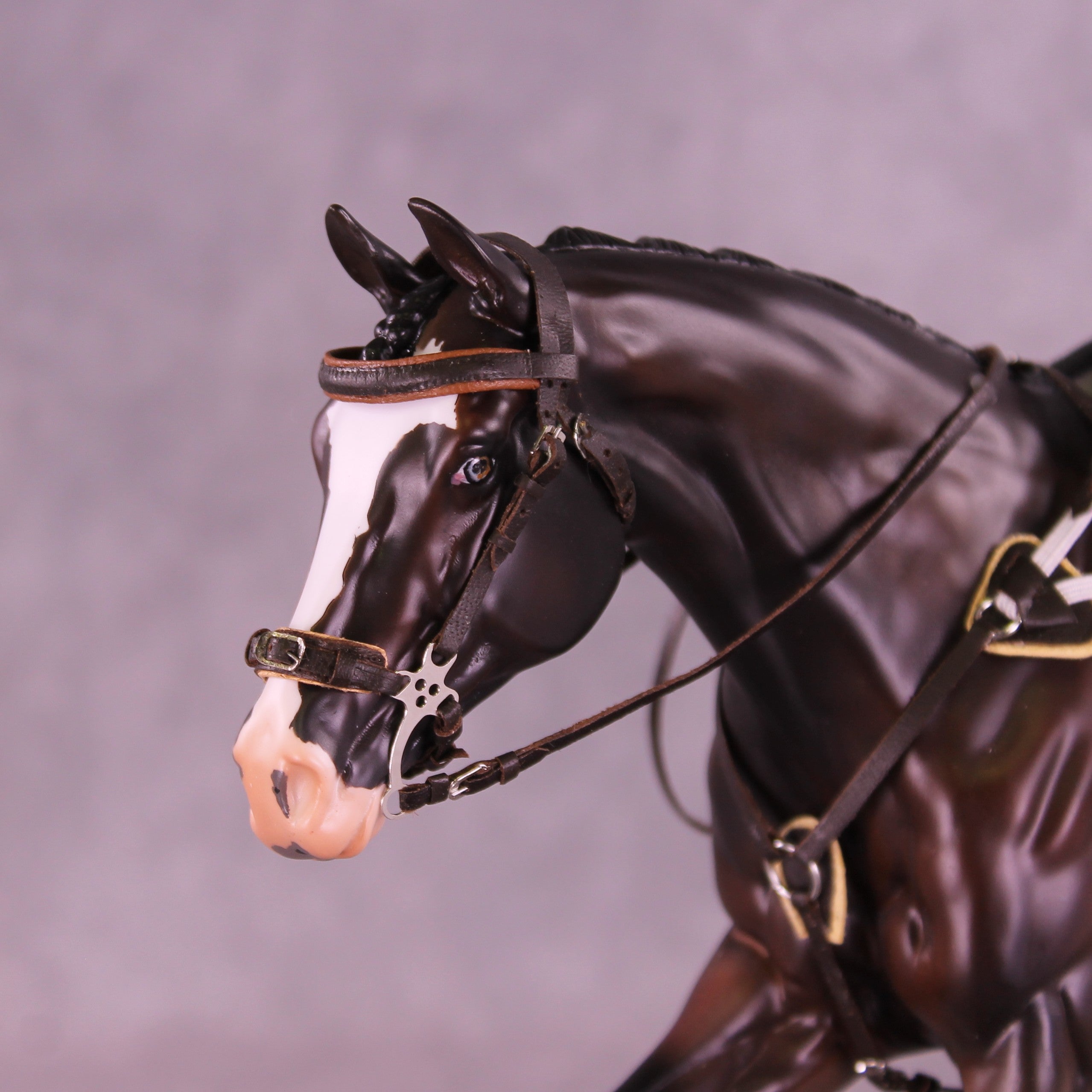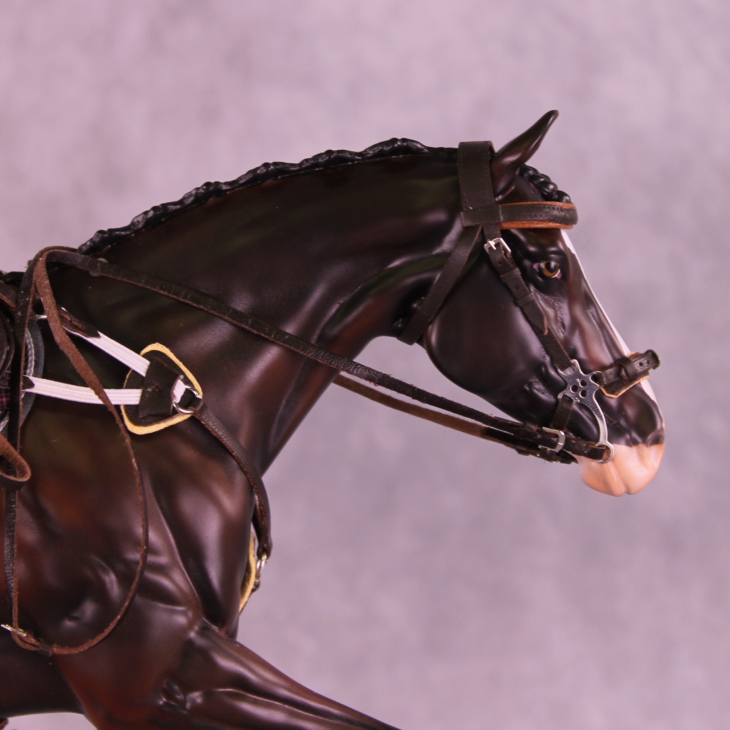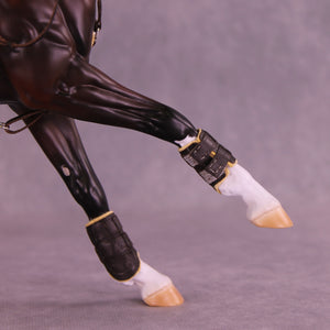 This month's tack set is a stunningly detailed, top show quality dark brown cross-country english set by Kristian Beverly! It comes with a padded mechanical hackamore, breastcollar, four boots, saddle, and saddle pad. This set is ready to win, and fitted to Volo already! One lucky buyer will get this tack set as a surprise inclusion in your package - keep that in mind if using lay-buy, it'll be six months before you find out if you got the lucky box!