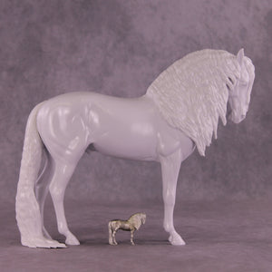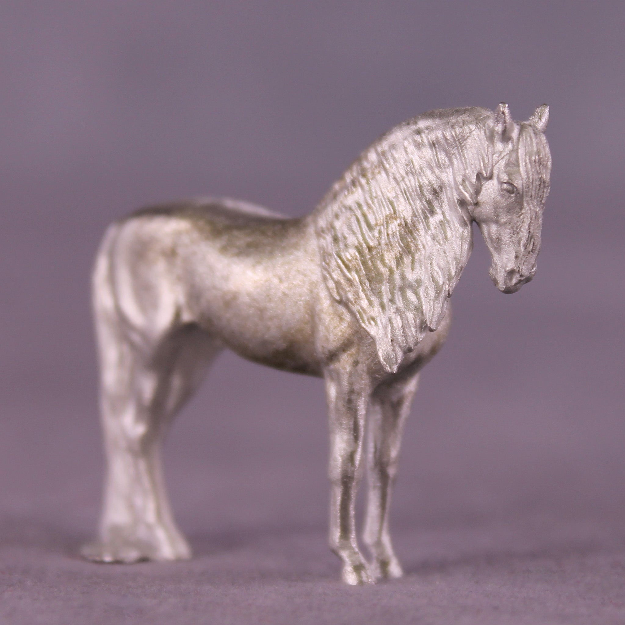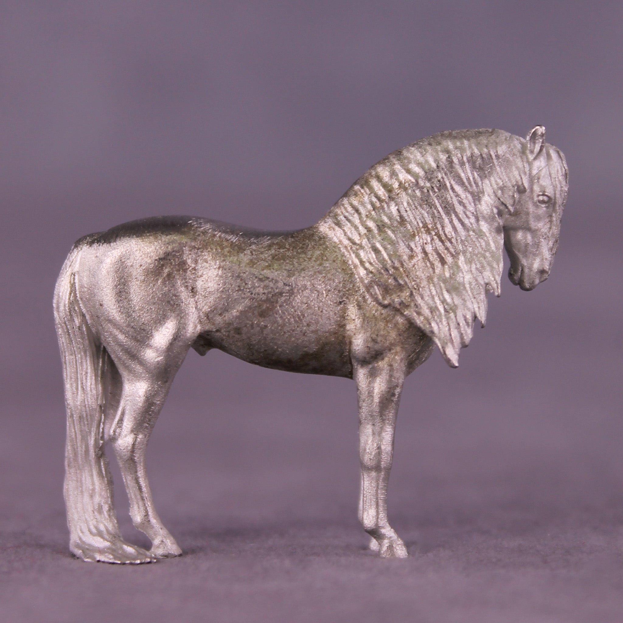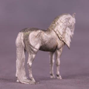 This micro is our iconic Andalusian, featuring his ever popular extra long mane and tail design. He's been professionally scanned and shrunk, and then re-balanced and detailed specifically for excellence in production in 1:64 scale by Maggie Jenner-Bennett. Along with Maggie's, these are the highest quality pewter micros on the market.