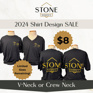 ♥We are excited to offer these great quality tees! This shirt is offered in a stylish black V neck tee (see other listing for Crew Neck Tee) with screenprint front and back design in the New Stone Horses Logo!
