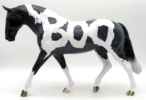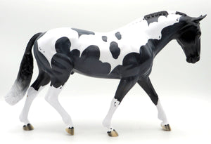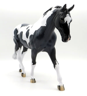 He's afraid of everything: plastic bags, big rocks, the moon, the wind, loud noises... and all of our other Moonlight Madness horses! We've had to keep him at the front desk, tucked away, because he just shakes like a leaf whenever the others look his way. (Not that we blame him!)