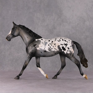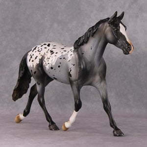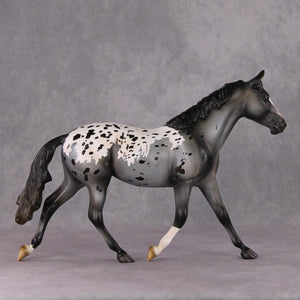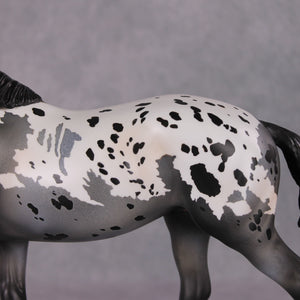 Another shining example of how sweet this mold is! She has a custom fluffy mane and tail, and Amanda finished her in this lovely blanket appaloosa with mottling, hand-done spots, and all the appy details you would expect!