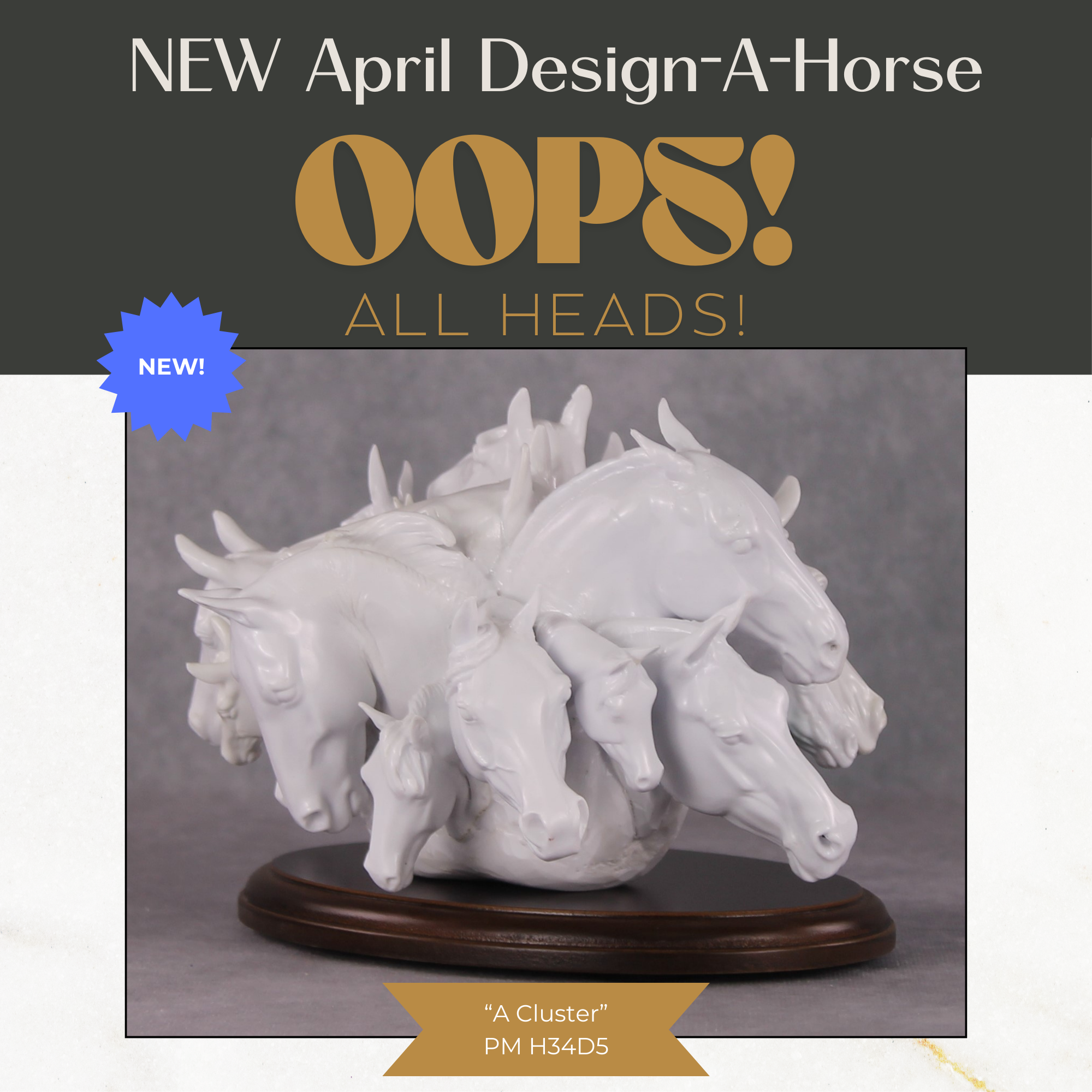 We’ve seen your feedback about wanting more customizations offered in Design-A-Horse, and you know we listen! We are proud to offer this truly unique creation reticentlylovingly pieced together by Matt Samuels from dead bodies extra inventory, to be painted to your color choice by me – Erin Corbett. I would not dare inflict this monstrosity on any of our wonderful and delightful staff painters. You may choose from any of the colors in the drop-down menu!