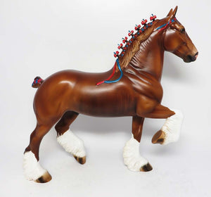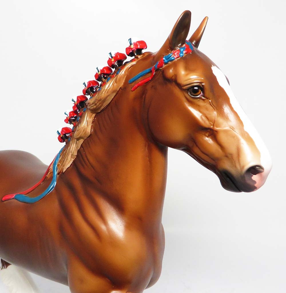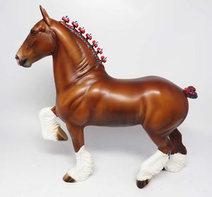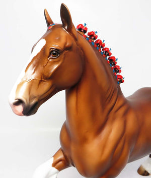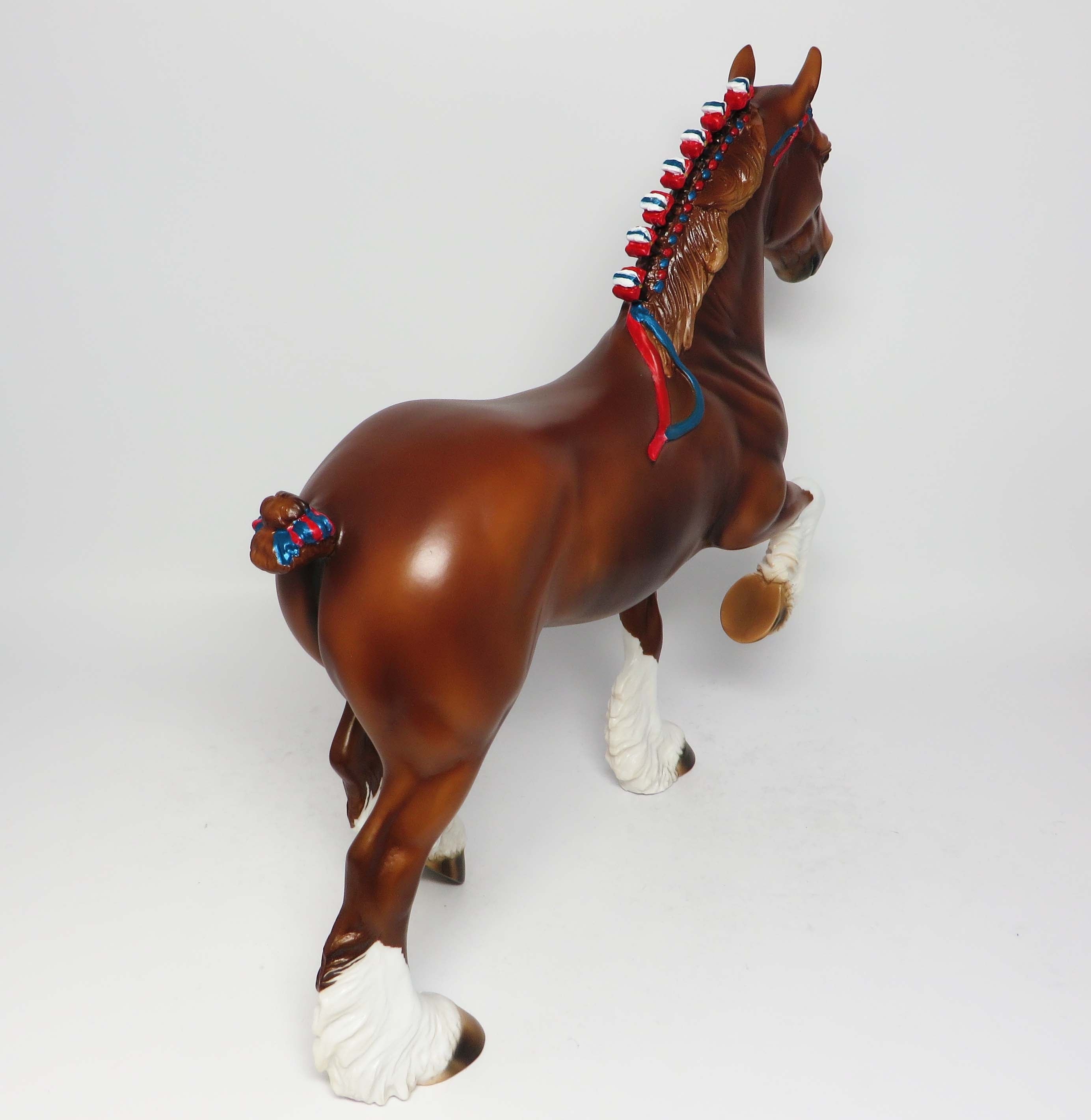 DOUBTING THOMAS-OOAK CHESTNUT TROTTING DRAFTER WITH RED, WHITE & BLUE RIBBONS MM 2017