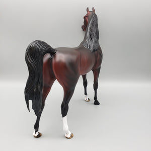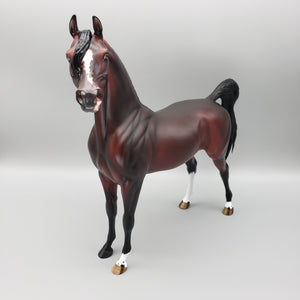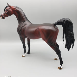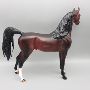 Meet Koloth! This OOAK Blood Red Arabian by Ellen Robbins for AoTH23 is the perfect model horse for horse lovers who love to stand out. With its dynamic color model and rich hues, Koloth is sure to be a showstopper you can be proud of! So saddle up and grab this one-of-a-kind horse before it's gone!