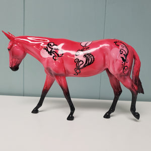 Lonely Heart OOAK Red W/ Hearts & Designs Glossy Deco Mule Pebble By Dawn Quick Val24