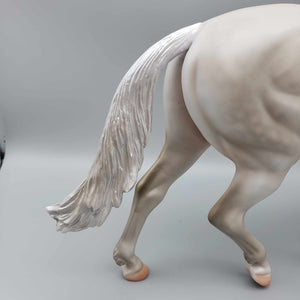 • Introducing Madara, the elegant Golden Champagne Irish Draught. This exquisite model horse brings literature to life, boasting an exquisite design and gorgeous coloring. Perfect for any collector, Madara is sure to captivate and inspire!