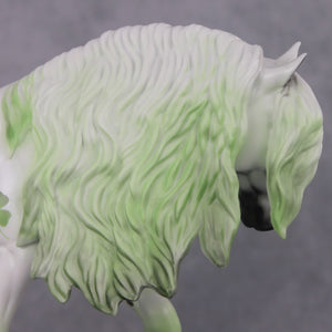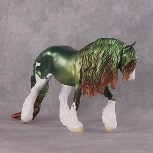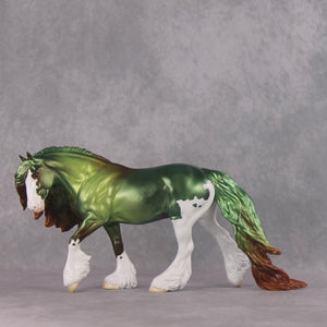 "Uaine" by Jess Hamill: a gorgeous dappled metallic green and rust sabino, with dramatic mane and tail shading and many tones of shiny green