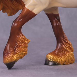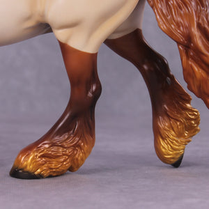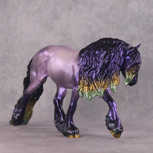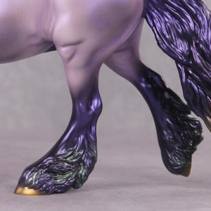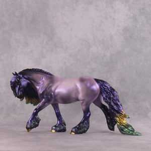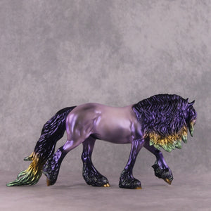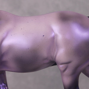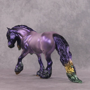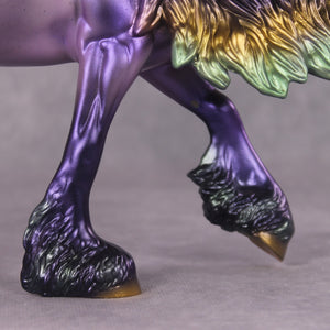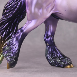 "Reveller Roan" by Ashley Palmer: a stunning shaded purple roan with gold and green shading in his mane and tail, gold hooves, and green highlights on his legs