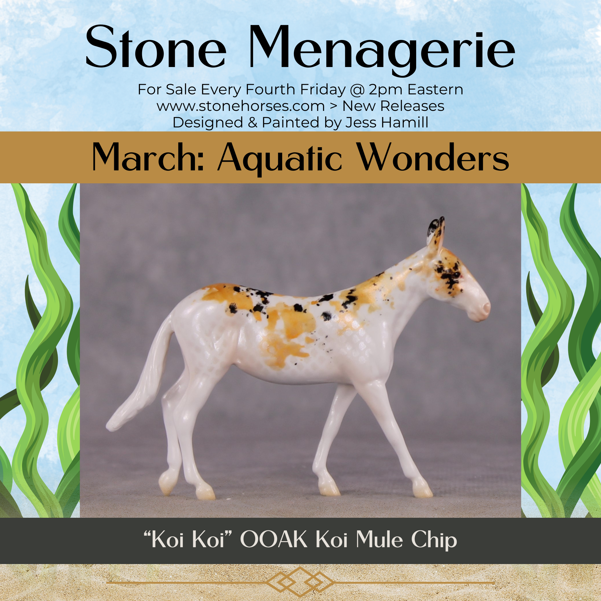 This month's Menagerie features a stunning collection of fish-inspired chip model horses. Each piece, crafted with Jess Hamill's artistic touch, features intricate details capturing the beauty and diversity of fish from rivers, lakes, seas, and oceans. Dive into this enchanting collection with us!