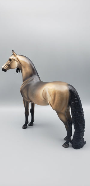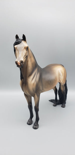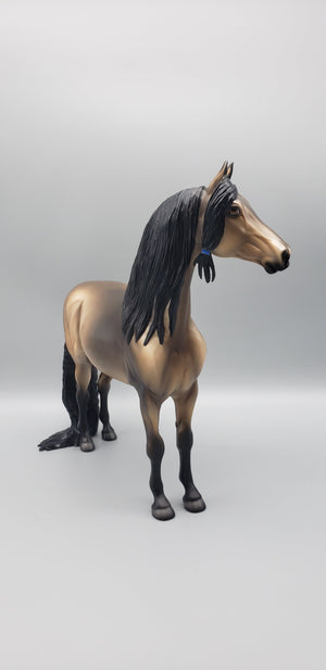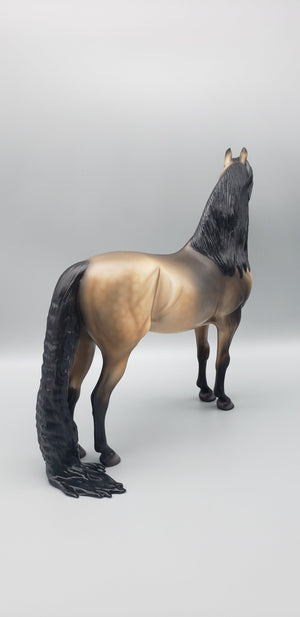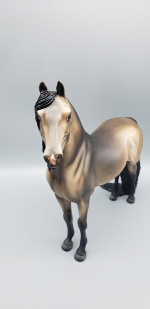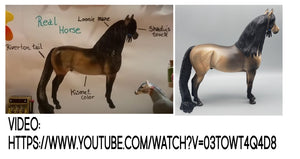 Introducing the Perfect Horse Morgan - the custom sooty buckskin Morgan with a dynamic and whimsical edge, brought to life by the talented Dawn Quick! This amazing model horse has been crafted to capture all of the vibrant energy of the video-created design and add a touch of fun to your shelves. A must-have addition to any model horse collection!