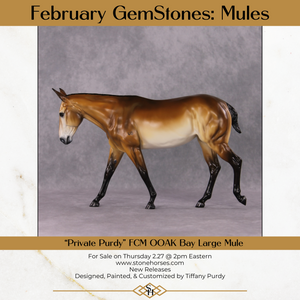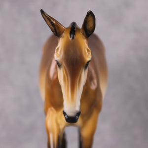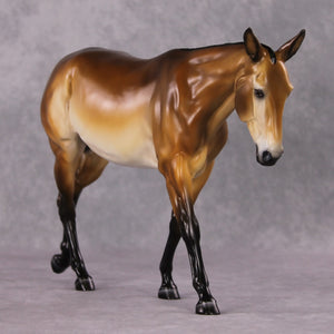 Tiffany created an iconic military mule from our large mule mold, complete with customized docked tail, roached mane, listening twitched ear, and US brand over a gorgeous dramatically shaded bay pangare paint job. An ode to the equines who have sacrificed so much, this piece is truly special.