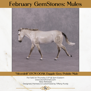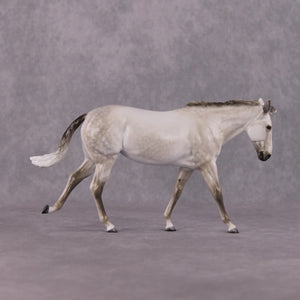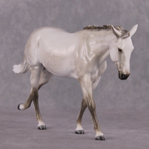 Tiffany worked her magic on this pebble mule, giving her a customized extended canter, swinging airplane ears and a new flowing tail. She is then finished in a gorgeous shaded dapple grey that brings out all of this piece's sculptural details